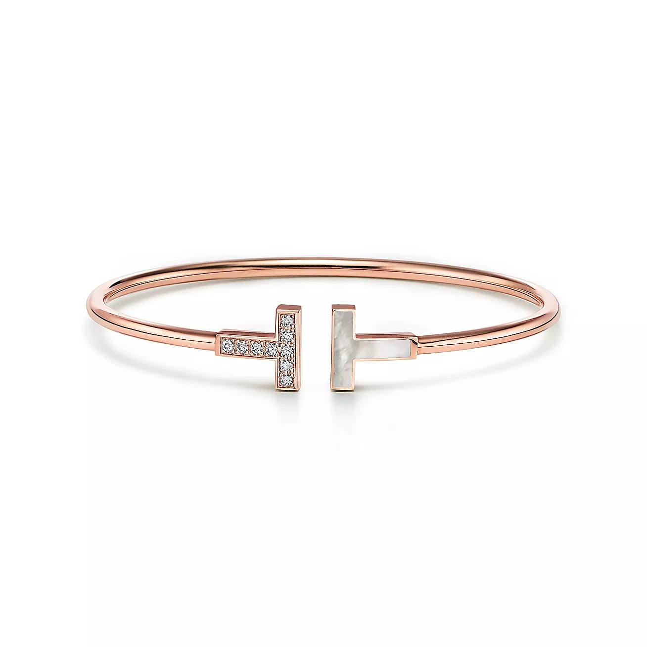 Lắc Tay Tiffany & Co T Chế Tác Vàng Hồng 18K Đính Kim Cương Tự Nhiên Và Đá Xà Cừ Trắng - MiA Jewelry